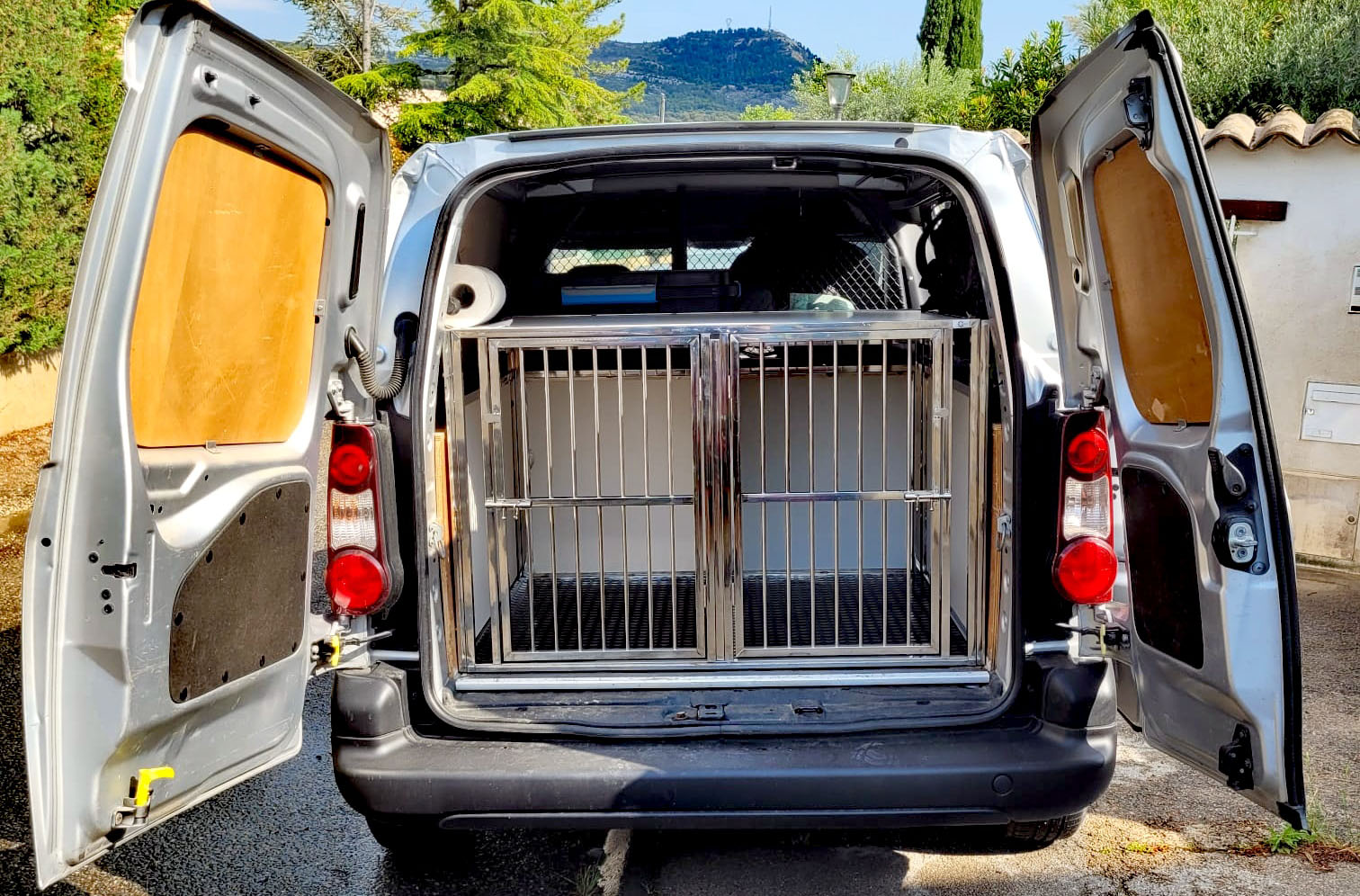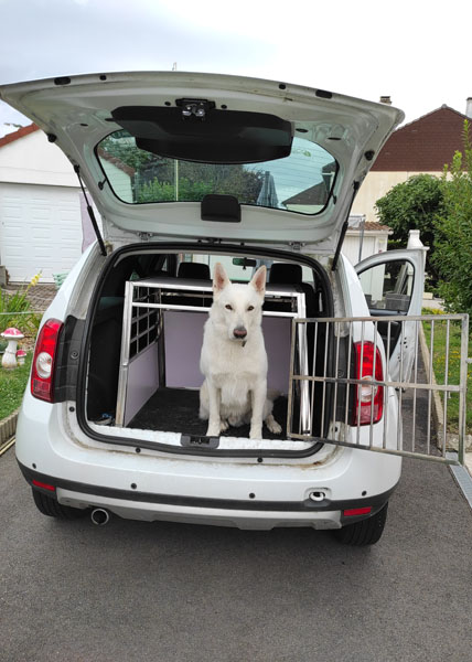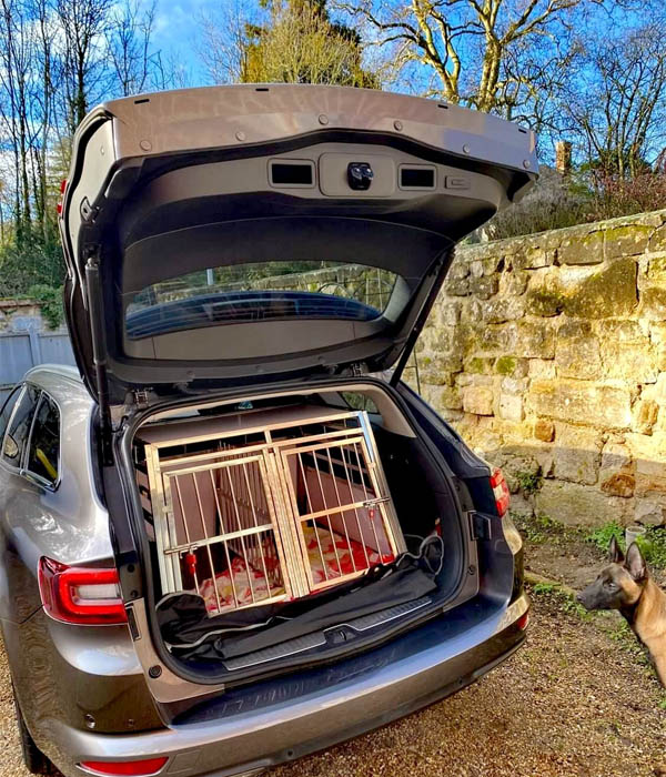 ◦ Cage de transport : Utilisez une cage de transport adaptée à la taille de votre chien. Assurez-vous qu’elle est bien fixée dans la voiture.
